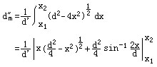 当d'<d时,积分上下限为X1= -d'/2,X2= d'/2代入,得:d"m={[1-(d'/d)2]1/2 +(d'/d)-1sin-1(d'/d)}•(d/2)