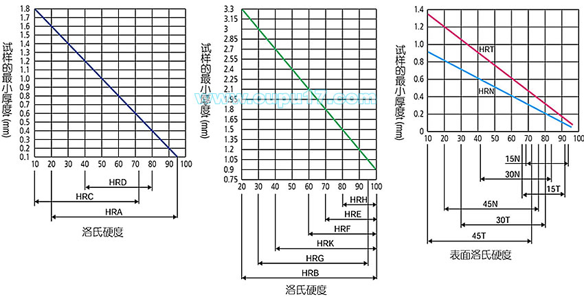 洛氏硬度表面洛氏硬度与试样最小厚度的关系![]() |